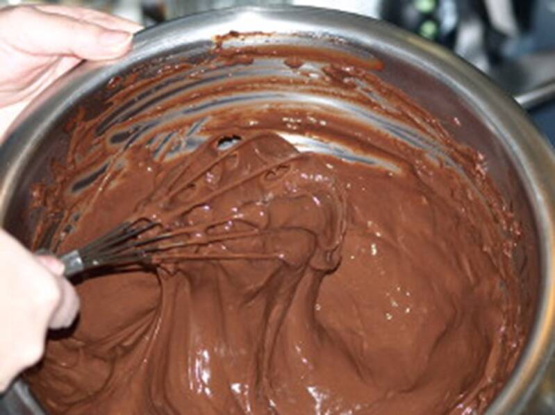- Roer af en toe, zodat de chocolade niet naar de bodem zinkt en aanbrandt.