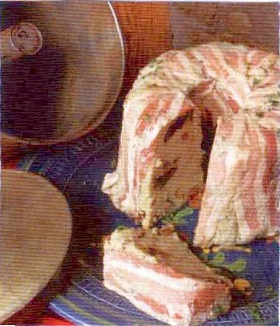 - Bekleed de vorm vervolgens van binnen dakpansgewijs met spek.