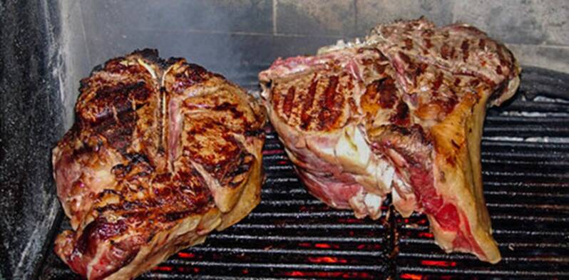 De bistecca, een enorm groot, mals en sappig stuk vlees van wit Chianinarund, wordt bestreken met extra vergine-olijfolie en geroosterd boven houtskool met wat geurig eikenhout of olijftakken. Voor het – met de karakteristieke Florentijnse eenvoud – op tafel komt, gaan er alleen nog zout en peper over. Dit is misschien wel het lekkerste vlees van heel Italië. In goede restaurants krijgen de gasten het rauwe vlees eerst te zien voor ze bestellen.