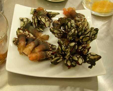 Het is een dure delicatesse aan de Galicische kust. Ik heb ze nog niet geproefd maar blijkbaar gaat het niet zozeer om de smaak, maar om het speciale uiterlijk. Op volgend filmpje kan je zien hoe men op de ‘pootjes’ knijpt, een klein poliepje komt naar buiten en dat trek je tussen je tanden mee. Er wordt gezegd dat ‘eenmaal je dit gegeten hebt, de weerzin tegen dat uiterlijk weg is, maar mij kan je hiermee toch niet bekoren.