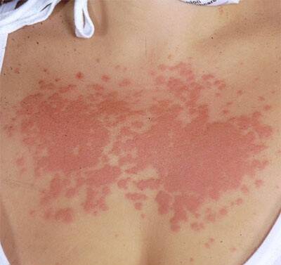De ernst van de huiduitslag kan dus variëren van licht jeukende roodheid van de zon beschenen delen tot een zeer uitgebreide jeukende huiduitslag