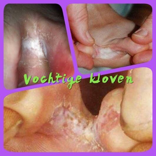 Bij vochtige kloven houd je de huid vooral droog en je behandelt best de kloven met een schimmeldodend product. Dit voorkomt infecties.