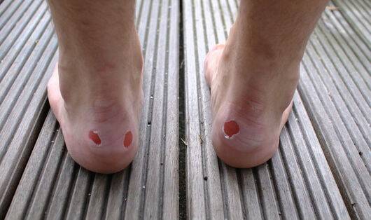 Het begint zo; door de combinatie van druk, wrijving en warmte is de huid rood en geïrriteerd. Houdt de wrijving aan, dan komt de bovenste huidlaag los van de daaronder liggende laag en vult de holte zich met vocht.