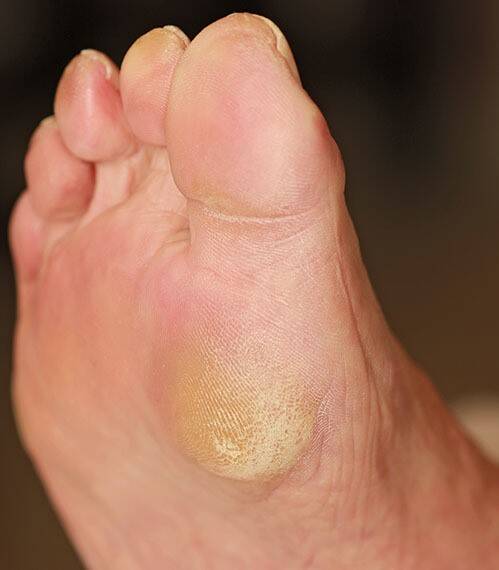 Wrijving op de huid leidt niet altijd tot blaarvorming, want we weten dat eeltvorming een verdedigingsmechanisme is. Maar zie je dat bij bepaalde plaatsen van de voet die te veel belast worden, er roodheid ontstaat, dan is dit vaak de voorbode van blaren.