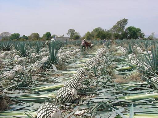 foto: oogst op het agaveveld - bladeren en hart afgesneden