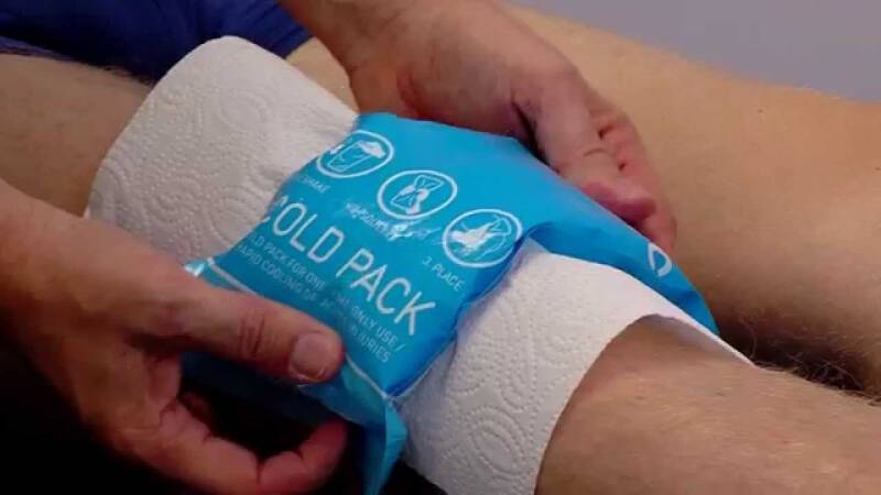 IJspakkingen (coldpacks) op het getroffen gebied leggen, kan de zwelling en pijn verminderen. Maar let op 'laat nooit langer dan 20 minuten aan één stuk ijs op een ontsteken pees liggen'.