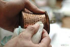 Koper gaat glimmen door poetsen met melk en wat zout. Maar koperen voorwerpen kan men ook als volgt doen glanzen: