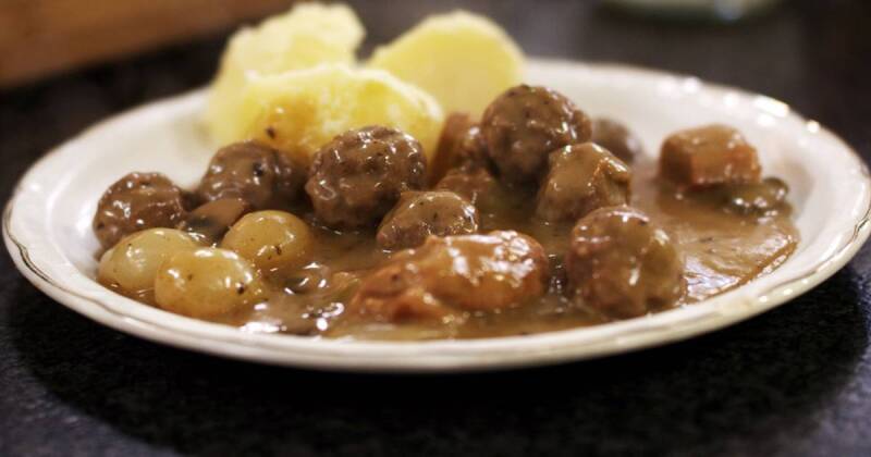 foto onder is van Kalfsfricassée met gehaktballetjes en krieltjes