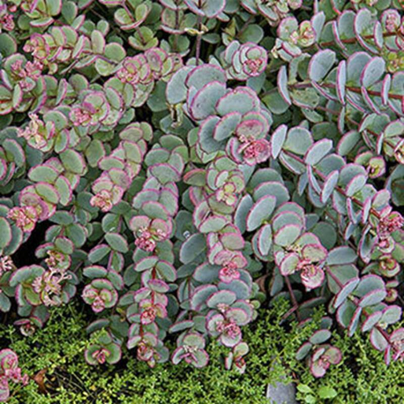 Aan het eind van de zomer verschijnen robuuste, vlezige blaadjes en karmijnrode bloementrosjes. De plant staat net op tijd in bloei om de herfstdagen op te vrolijken en zorgt in de winter, bedekt met rijm, voor een decoratieve toets.