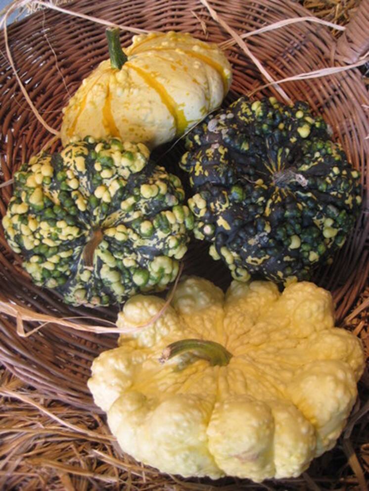 Leuk als decoratie maar ook lekker op je bord, als een eenpersoonsportie met een vulling. Ook de Sweet Dumpling – een kleine groenwit gestreepte met dikke ribben en zoet, oranje vruchtvlees – en witte Baby Boo zijn prachtige mini’s.