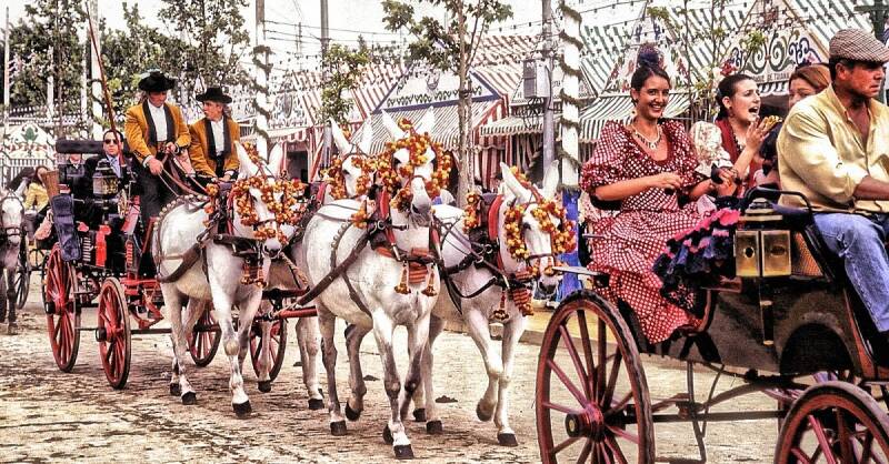 Het aprilfeest is een ideale gelegenheid om zelf ook mee te feesten, en niet alleen maar toe te kijken. In Sevilla verandert de wijk Los Remedios in een groot decor voor een miljoen feestvierders. Vrouwen in lange flamencojurken en mannen met Andalusische hoeden paraderen overdag op paarden en versierde rijtuigen door de straten. Vanaf vroeg in de avond tot aan zonsopgang klinkt er overal het geluid van de sevillana, de plaatselijke variant van opgewekte flamencomuziek.