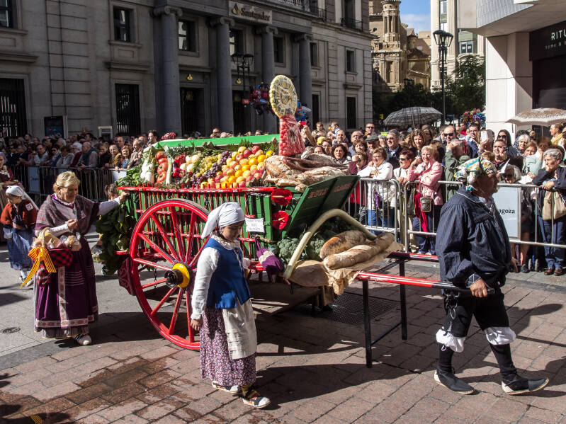 Op deze dag gaan in Zaragoza duizenden mensen gekleed in traditionele kostuums de straat op. Ze leggen bloemen bij het beeld van de heilige Virgen del Pilar op het plein Plaza del Pilar. Deze bloemen blijven liggen om door het publiek bezichtigd te kunnen worden. Na het aanbieden van bloemen wordt er een mis gehouden in de Basilica del Pilar om middernacht gevolgd door een parade. In de ochtend van 13 oktober vindt het fruitoffer plaats.