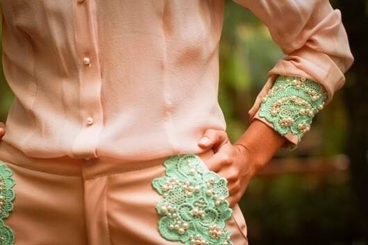 Heb je geen kant, maak van een oude stof met een leuk patroon (bv. van sjaaltje of T-shirt) een mooie rand aan de uiteinde van de mouwen, aan de onderrand van een shirt of als patchwork op een broek. Met een schaar en naald & draad kom je een heel eind!