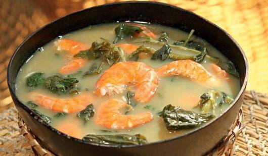 1. Tacacá, dit is een dikke gele soep met gedroogde garnalen en look.