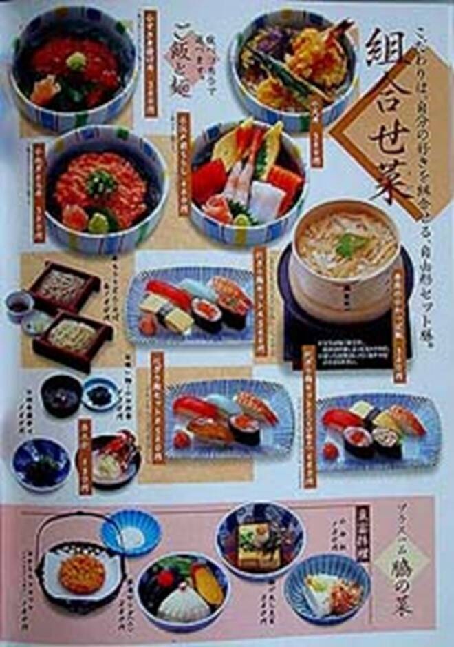 Veel Japanse restaurants hebben een etalage, waar de meeste gerechten (van plastic) tentoongesteld liggen. Meestal staan de prijzen er bij, zodat op die manier een keuze te maken is.